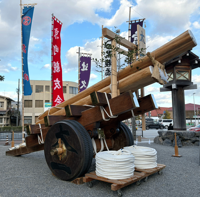 伊勢御遷宮委員会(会長=鈴木健一伊勢市長)は、第六十三回神宮式年遷宮及び、今年・来年の「お木曳行事」について、広く情報発信するため、豊受大神宮(外宮)の表参道火除橋前で昨年十二月三十一日から今年一月十二日まで、奉曳車の展示をおこなった。